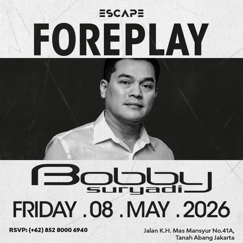 FOREPLAY, 8 May at #ESCAPE For those who know the sound. For those who've lived the nights. Bobby Suryadi is back, bringing an old-school set for a night shaped by experience. Don’t miss this one. Secure your spot now.
