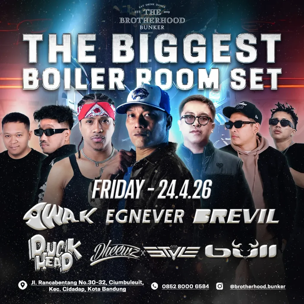 Jumat biasa? Nah, get outta here. This is THE BIGGEST BOILER ROOM SET in @brotherhood.bunker, and you’re gonna be there. Close crowd, loud system, & vibe nu panas pisan ti awal nepi akhir. 😎🔥