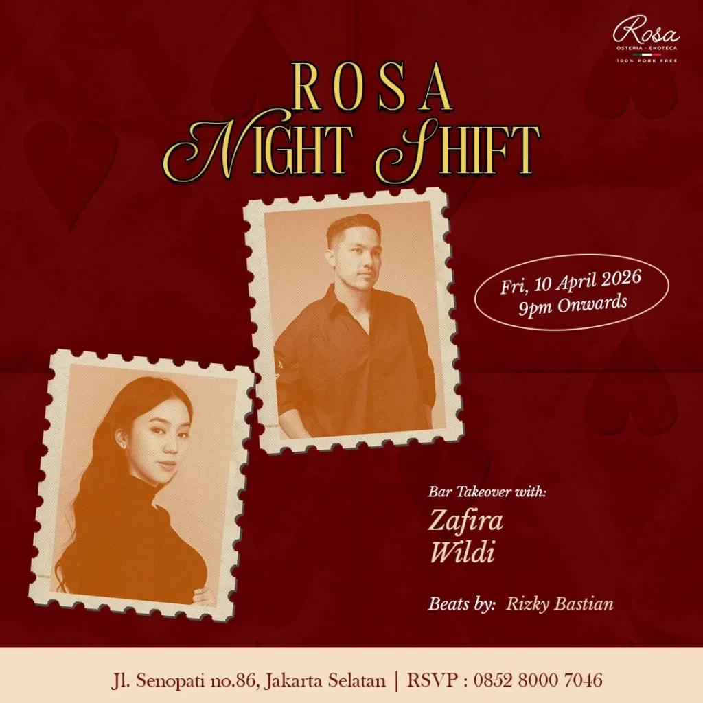 Rosa Night Shift Vol. 4 is coming Friday, 10th April! A night of crafted pours by Zafira & Wildi, soundtracked by the beat king Rizky Bastian. Starting from 9PM onwards. Good drinks, good music, and a table worth staying late at night.