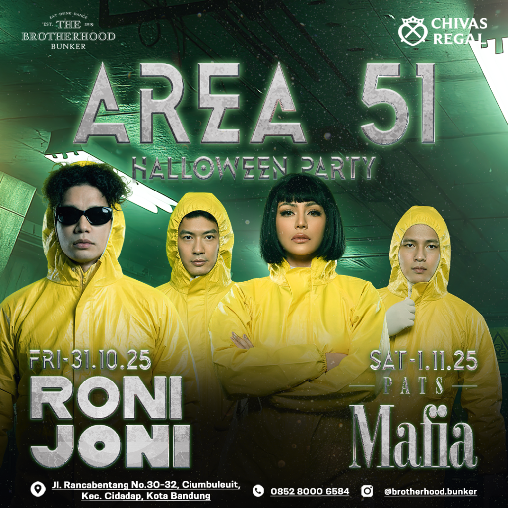 Bandung, they’re landing soon… 😈🚨 AREA 51 HALLOWEEN PARTY is coming for you! 👽🔥 31 Oct & 1 Nov, siap joged 2 hari full no mercy? Ditemenin trio @pats.mafias dan @ronijoni_ crowd pasti rame, teu aya obatna.
