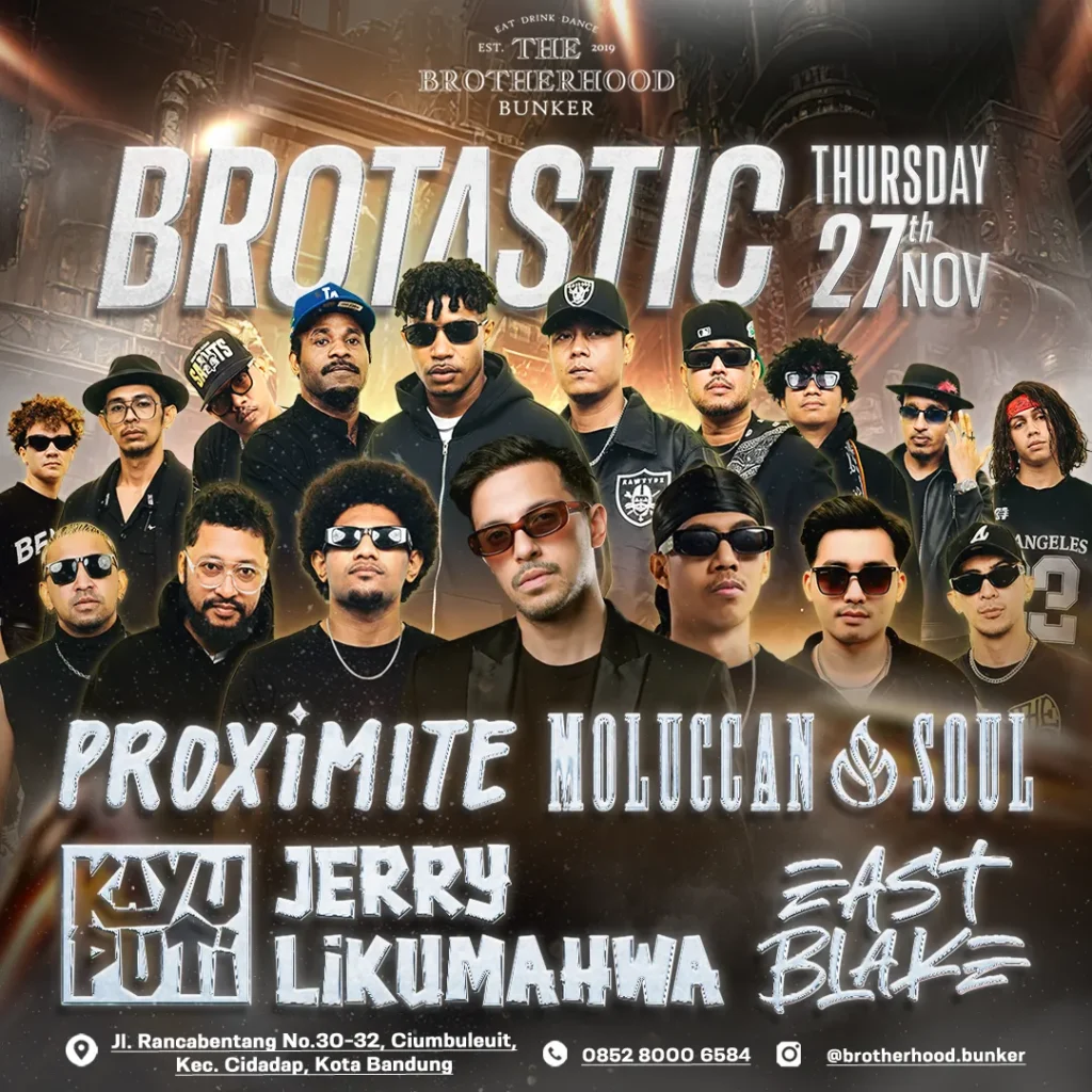 Ayeuna Barudaks Bandung party timuran, euy! Akhir bulan teu kudu bosen atuh... BROTASTIC hari Kamis bakal diramein bareng performer kece dari timur, @moluccansoul, @djproximite, @jerrylikumahwa, & @east.blake! Siapkeun diri buat goyang semaleman tanpa ampun. Kapan deui party se-panas ieu mampir ka Bandung?