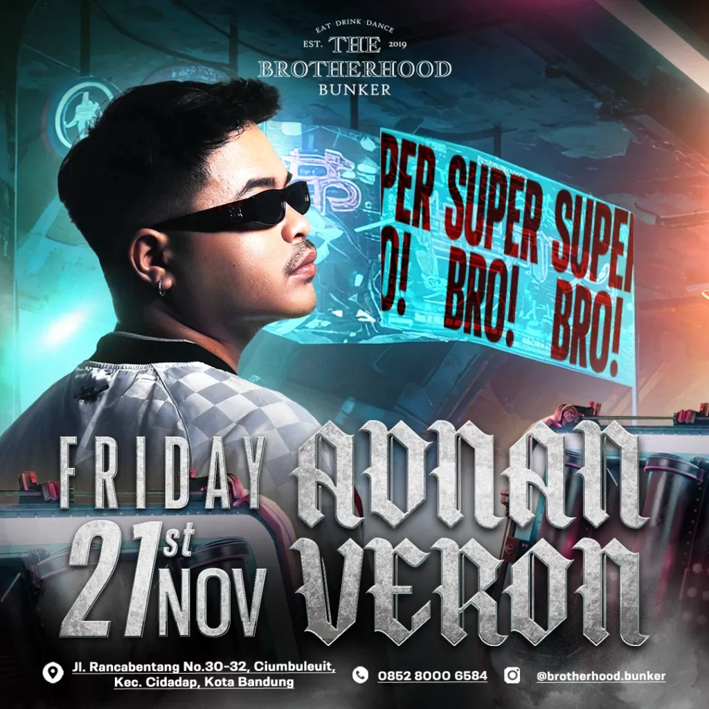 Mau nongkrong di mana Jumat malem? Atuh di Bunker lah, @adnanveron lagi main, masa lo skip sih? SUPERBRO is your night of full bounce, no mercy. Crowd-na bakal edan, Bung. Kalo Bandung sampe teu turun full team, fix aya nu salah. Bawa geng lo, hayu buktiin siapa yang paling ready nge-break bareng the Indo-Bounce King! 😎 #MariBungPartyKembali